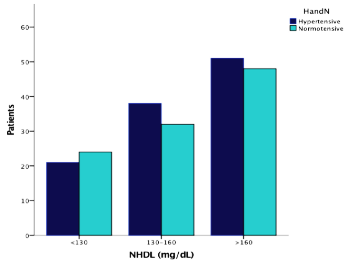 Figure 1: Non-HDLC levels in hypertensive and normotensive diabetics.