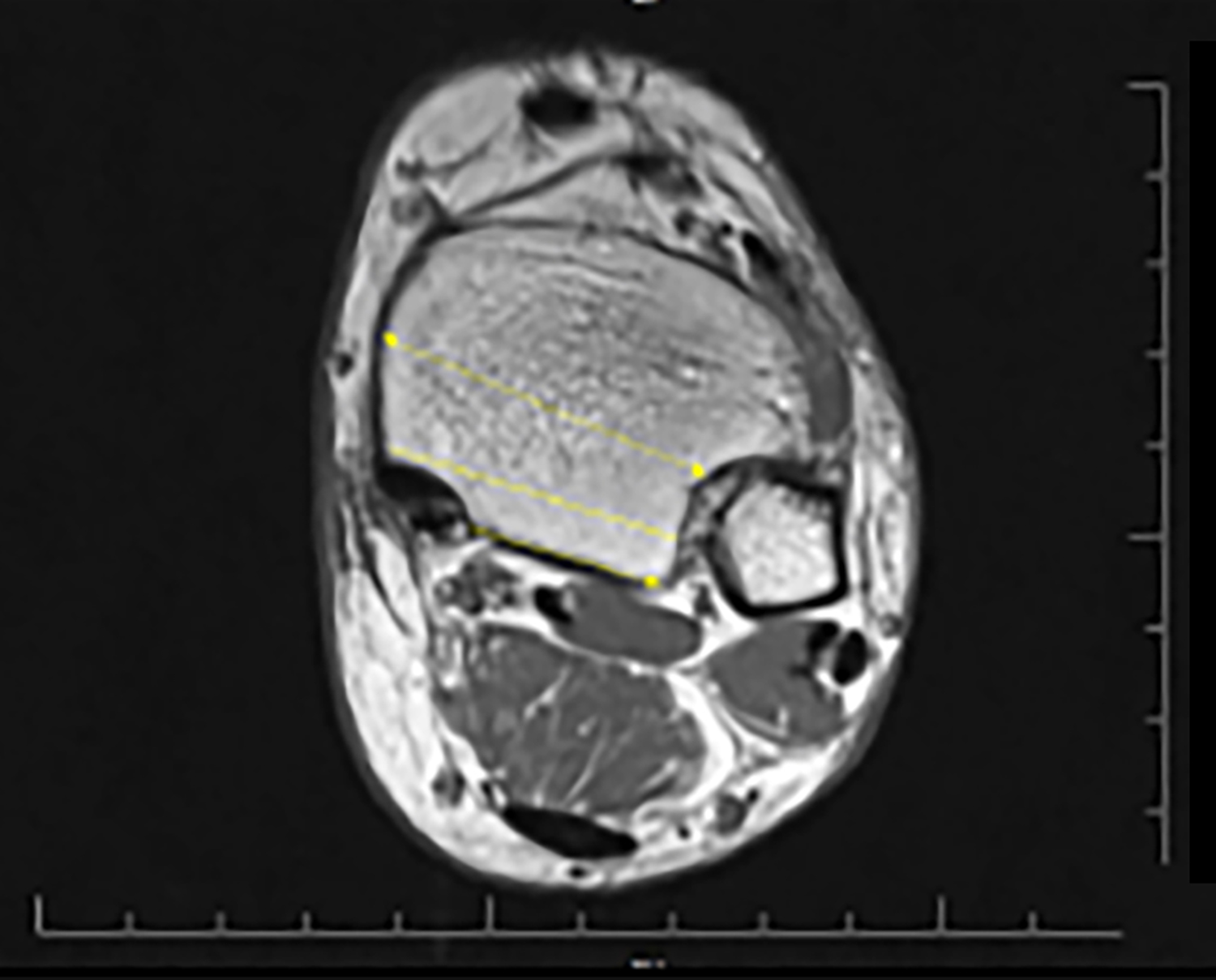 Ethical approval was waived by the local Ethics Committee of Yildirim Beyazit University Yenimahalle Education and Research Hospital (date: 26 May 2021, approval No. 2021-07-01) in view of the retrospective nature of the study and all the procedures performed being the part of routine patient care. MRI images were retrospectively screened from the hospital image archive. Among the patients, who presented between January and December 2020, 108 cases that underwent an ankle MRI were identified. Patients with congenital malformations in the foot or ankle, a known history of trauma, and fractures or inflammatory diseases involving the medial of joints, those professionally involved in sports, and those aged below 18 years, were excluded from the study. All the MRI scans that had been performed due to non-traumatic pain, were included.