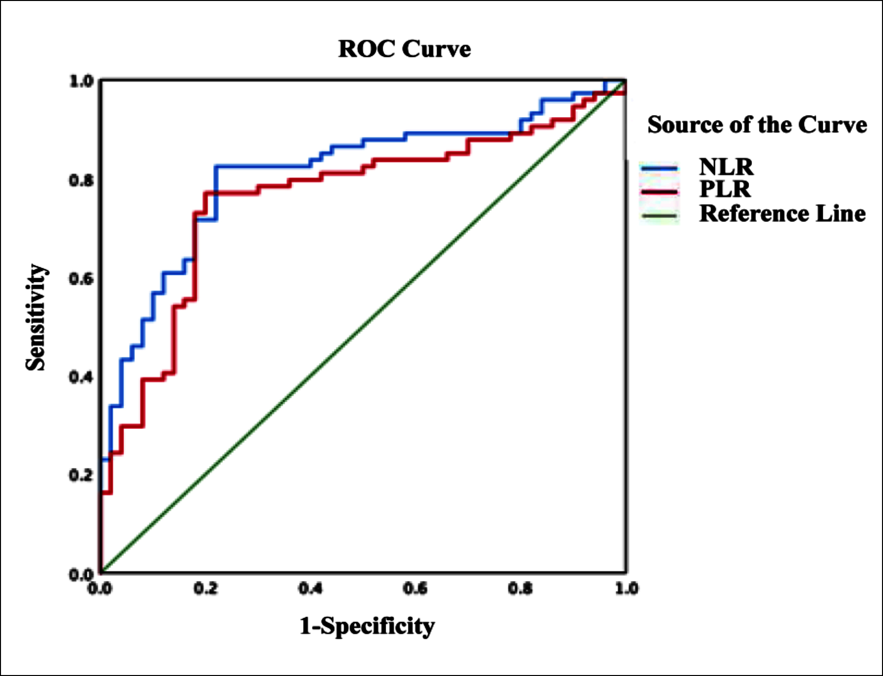 Figure 1: ROC curves of NLR and PLR predict early-onset neonatal sepsis.